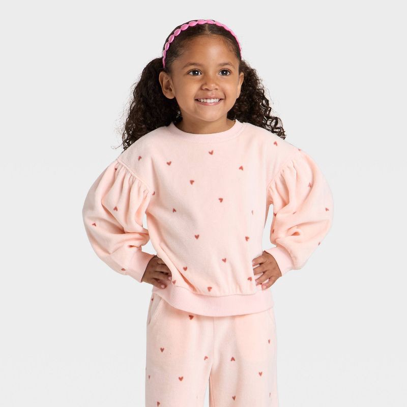 Comfort meets adorable style in this Velour Crewneck Sweatshirt from Cat & Jack™. Made from cotton-recycled polyester blend velour fabric, this crewneck sweatshirt provides cozy comfort. It boasts puf…