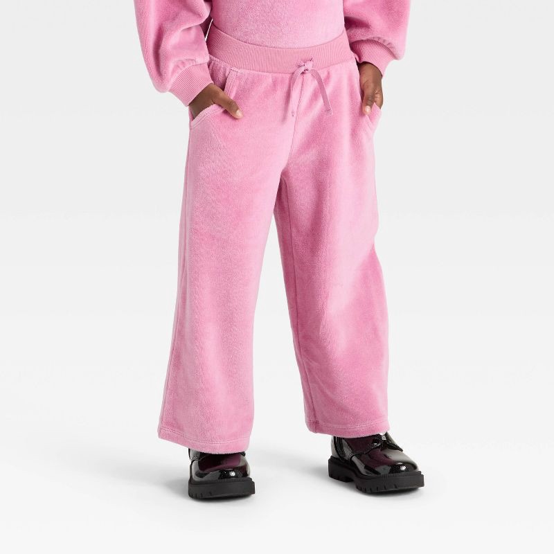 Whether going for a sleepover or hanging out with friends, these Velour Wide-Leg Pants from Cat & Jack™ are an ideal pick for your kid's adventures. Made from cotton-recycled polyester blend fabric, t…