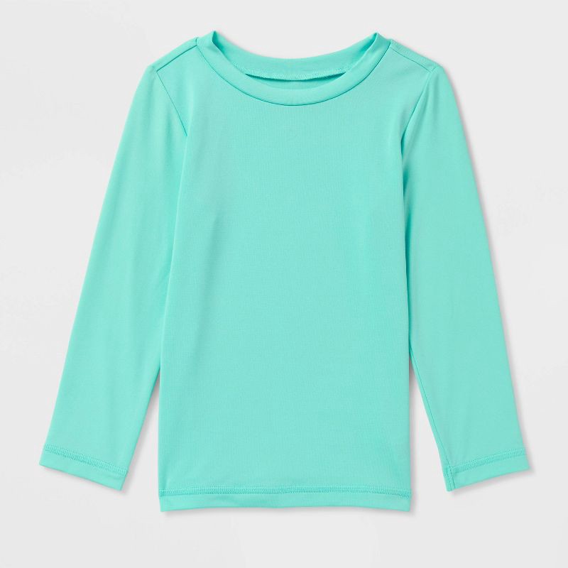 slide 2 of 3, Toddler Long Sleeve Solid Swim Rash Guard Top - Cat & Jack™ Bright Aqua 3T, 1 ct