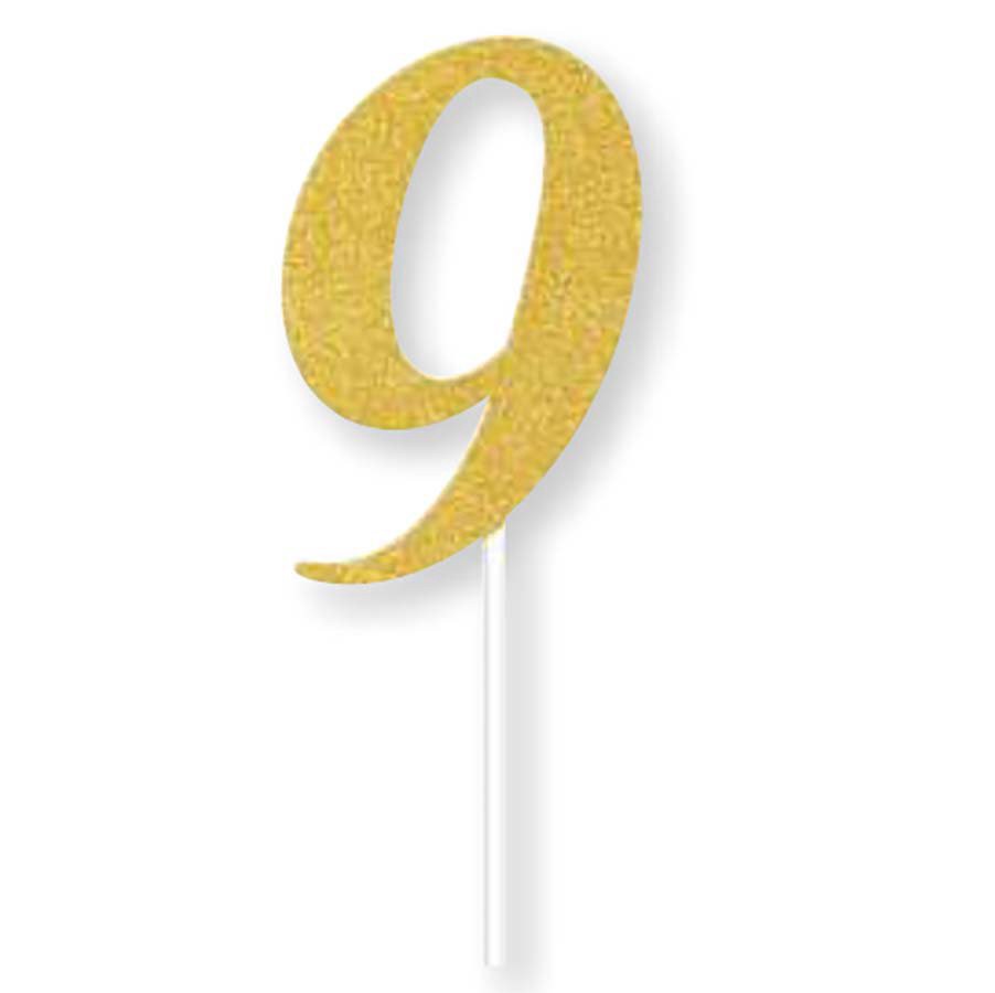 Creative Converting Gold Glitter 9 Cake Topper, 6 in.No Mess Glitter