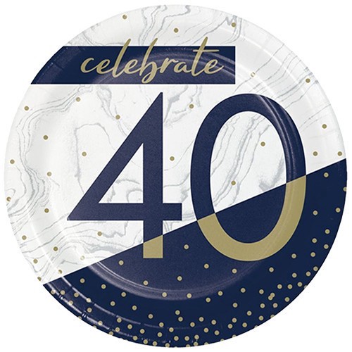 Cc - Plates 7In Milestone 40Th Navy & Gold