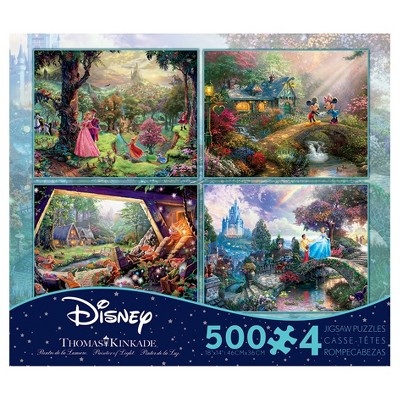 Enjoy puzzles painted by Thomas Kinkade. Disney images of Sleeping Beauty, Mickey Mouse, Snow White and Cinderella in one box. Each puzzle is 500 pieces. Made in the USA by Ceaco. Each Puzzle is 18''x…