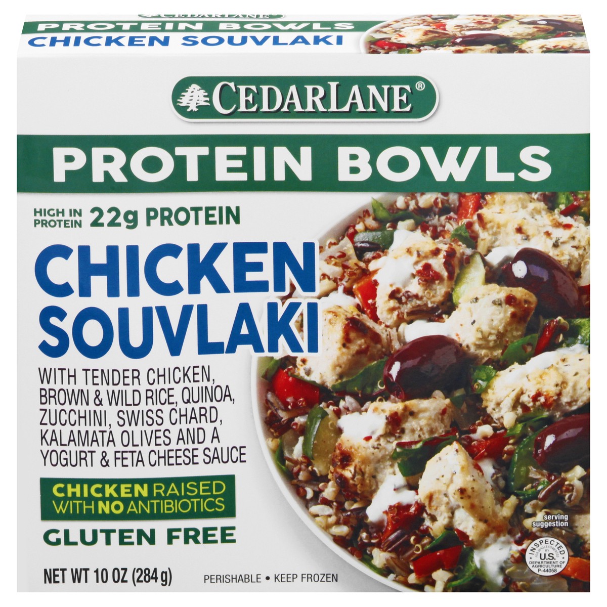 With tender chicken, brown & wild rice, quinoa, zucchini, swiss chard, kalamata olives and a yogurt & feta cheese sauce. High in protein 29 g protein. Gluten free. Chicken raised with no antibiotics. …