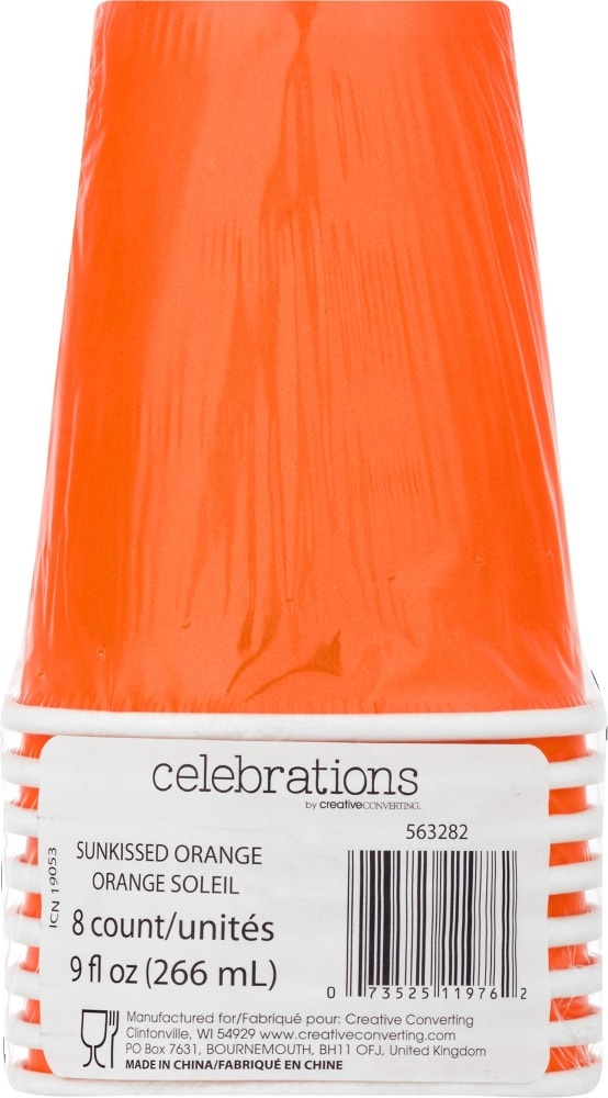 slide 1 of 1, Celebrations Cups, Sunkissed Orange, 9 Ounce, 8 ct