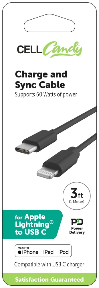 slide 1 of 1, Cellcandy Charge And Sync Cable -Black, 3 ft