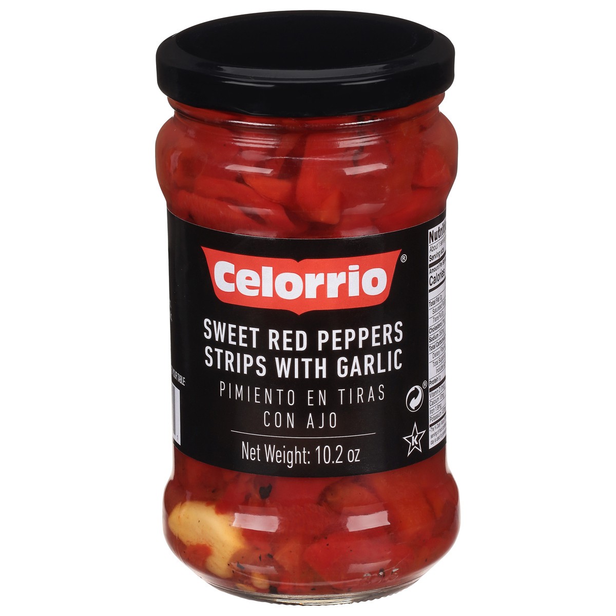 slide 6 of 9, Celorrio Sweet Red Peppers Strips with Garlic 10.2 oz, 12 oz