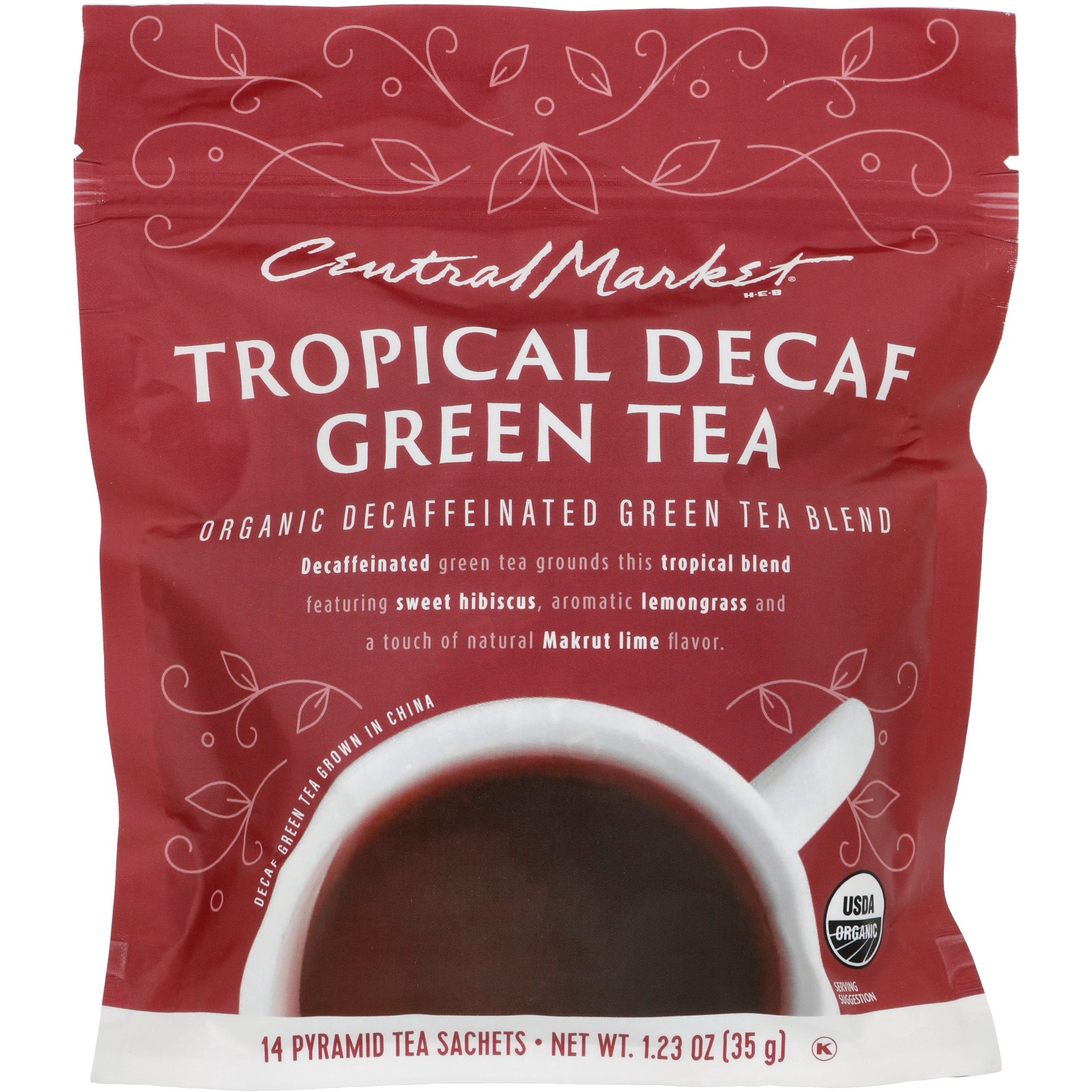 Central Market Decaf Tropical Green Tea Pyramid Tea Sachets