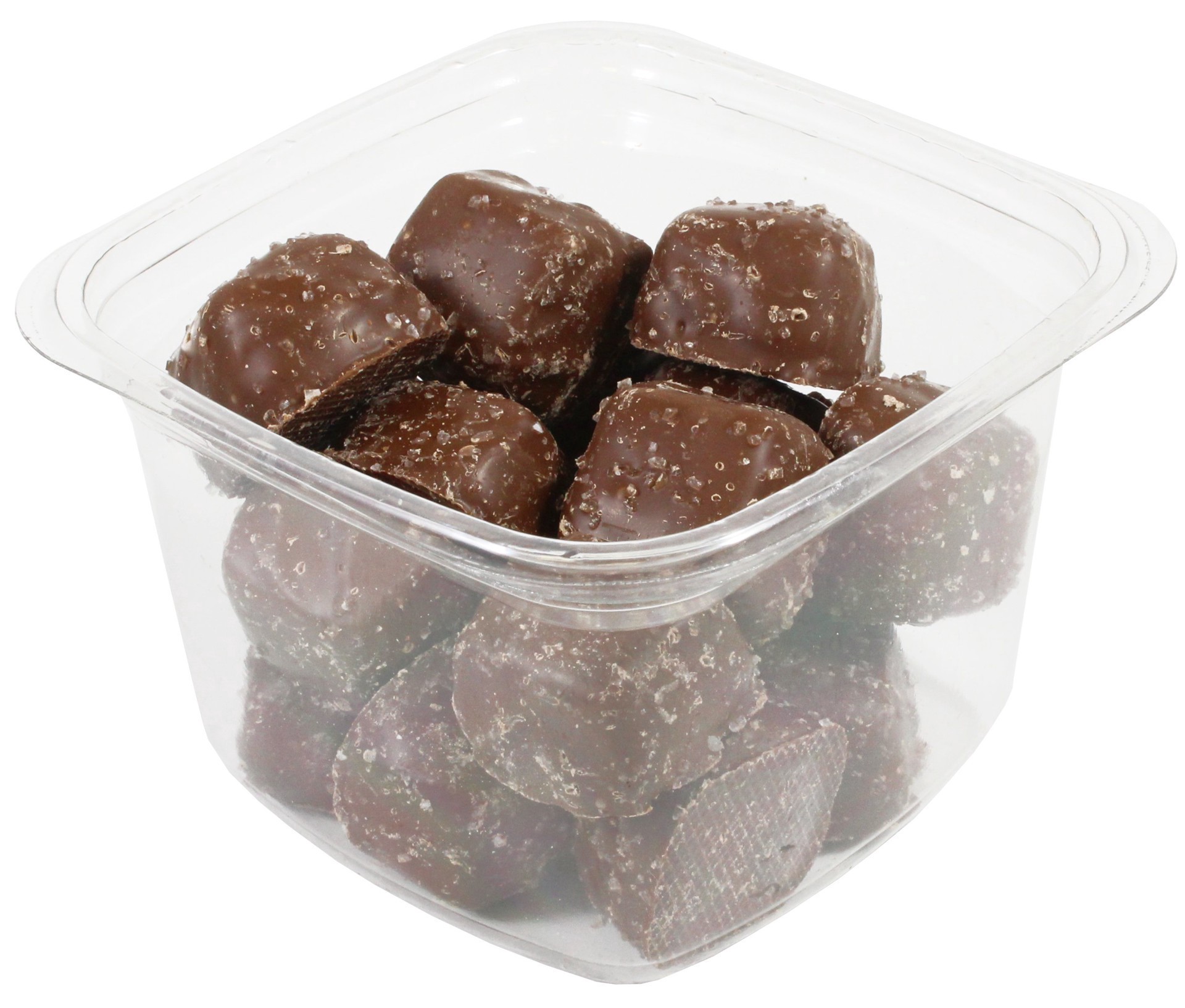 Sweet caramel covered in smooth milk chocolate and sprinkled with flaky sea salt.