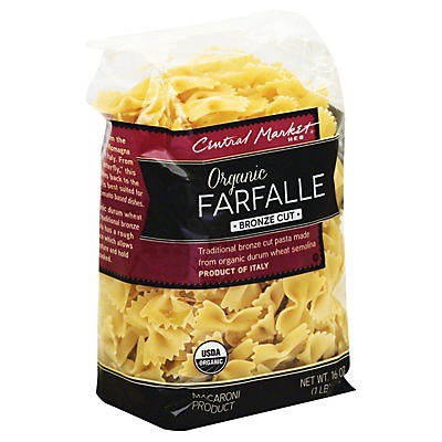 From Central Market, this organic bow tie pasta dates back to the 15th century and is best suited for cream and light tomato-based dishes. Made with organic durum wheat semolina using traditional bron…