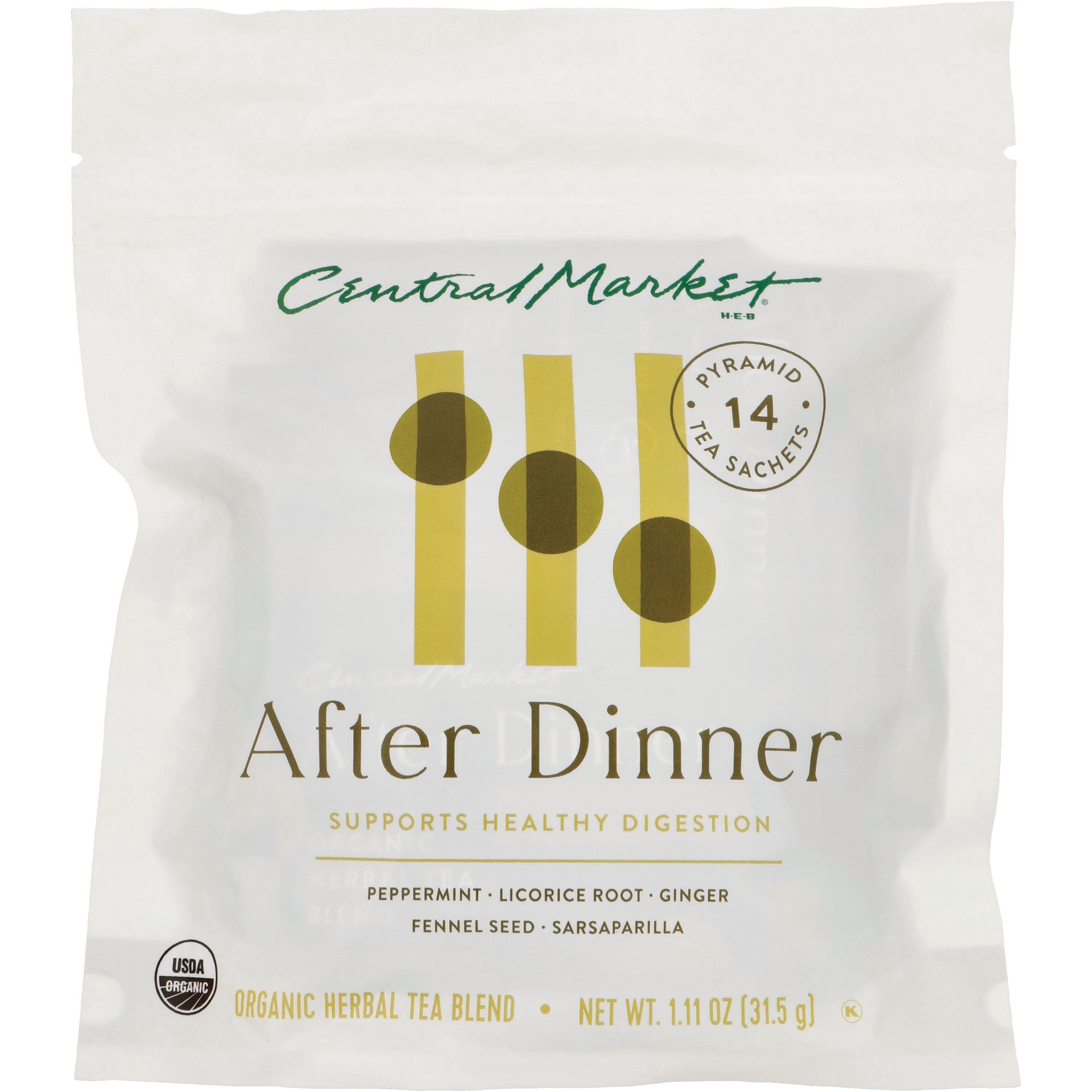 Reset after dinner with this unique combo of herbs that provides a highly aromatic, gentle and comforting experience. This classic blend of fresh peppermint, sweet licorice root and sharp ginger, roun…