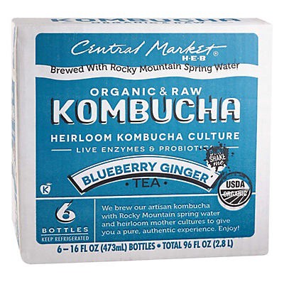 Brewed with Rocky Mountain spring water and heirloom mother cultures, Central Market Organic Blueberry Ginger Kombucha is raw, unfiltered and deliciously refreshing. It contains live enzymes and probi…