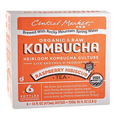 Brewed with Rocky Mountain spring water and heirloom mother cultures, Central Market Organic Raspberry Hibiscus Kombucha is raw, unfiltered and deliciously refreshing. It contains live enzymes and pro…