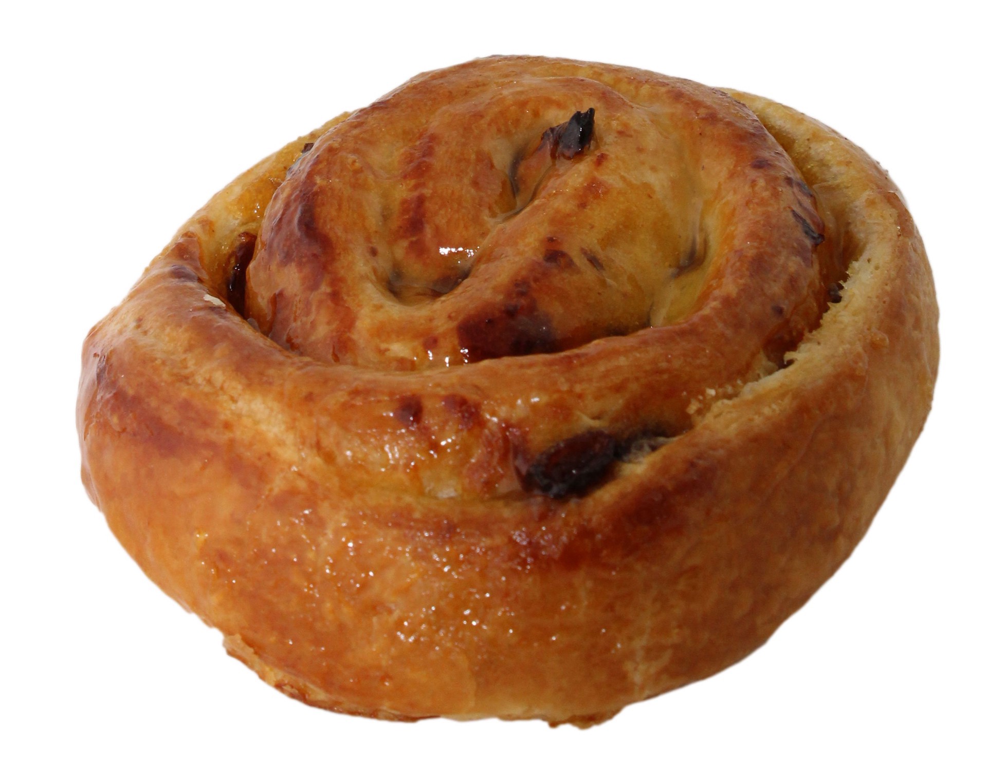 Croissant dough rolled with pastry cream and plump raisins.