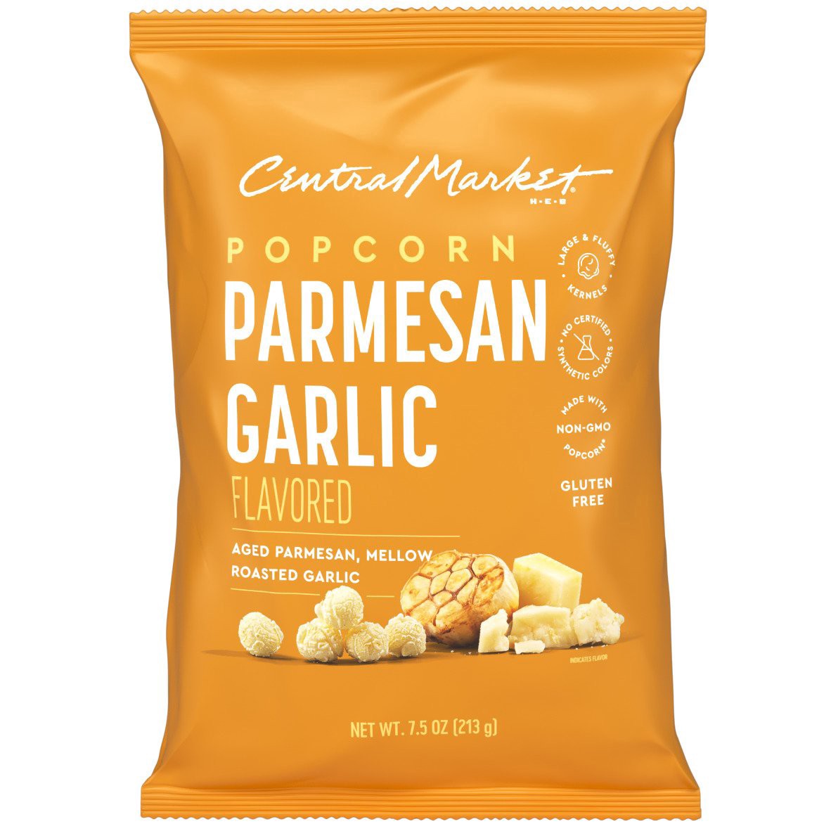 Central Market Parmesan Garlic Popcorn is made with aged Parmesean and mellow roasted garlic. A few handfuls in, you might start wondering how we were able to pack so much flavor into each kernel. You…