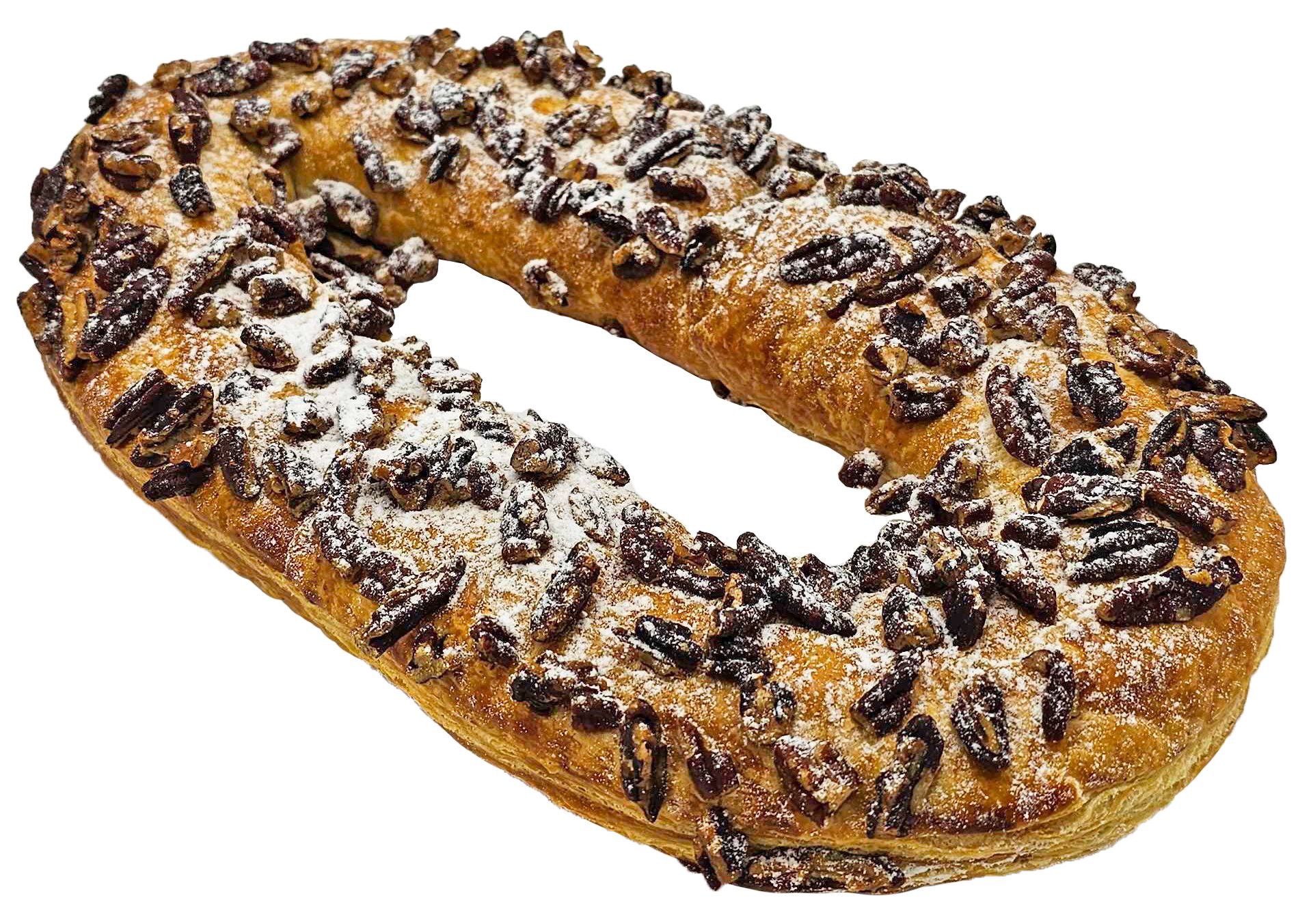 A tender, layered, buttery pastry, topped with crunchy pecans and powdered sugar. A perfect treat for brunch!