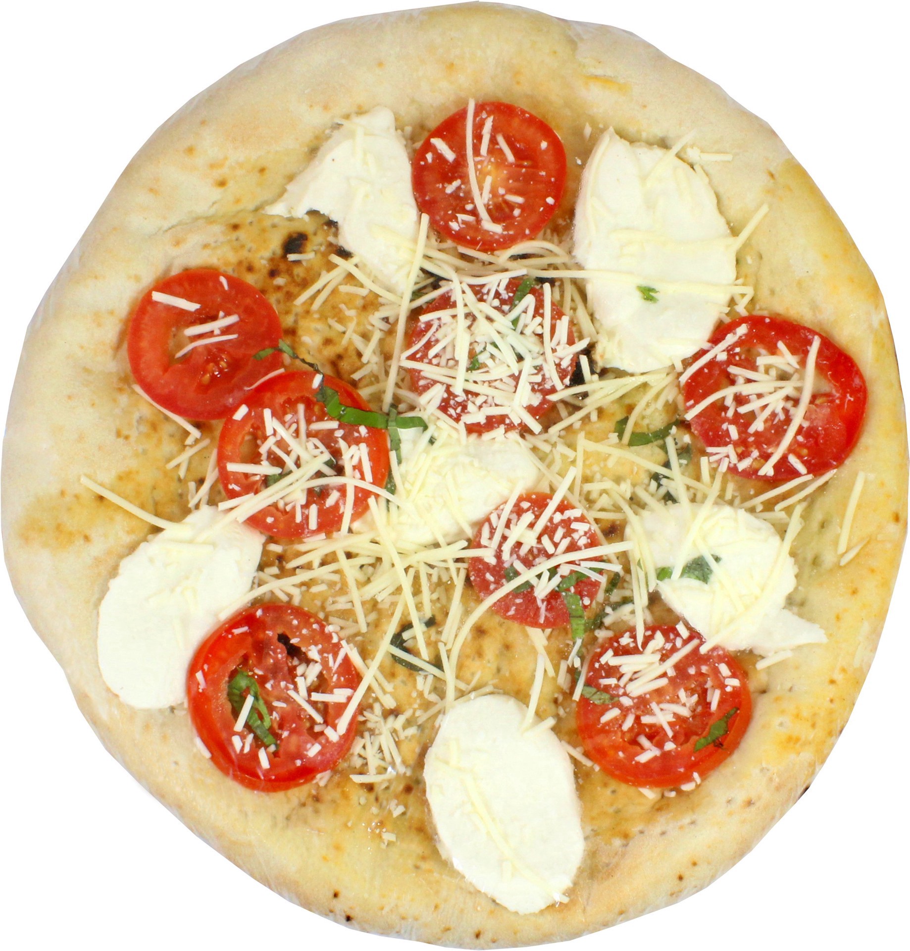 margherita pizza (pizza crust (wheat flour, water, salt, extra virgin olive oil, yeast), mozzarella logs (whole milk (pasteurized), starter, cheese cultures, rennet (vegetable), salt), tomatoes, angel…