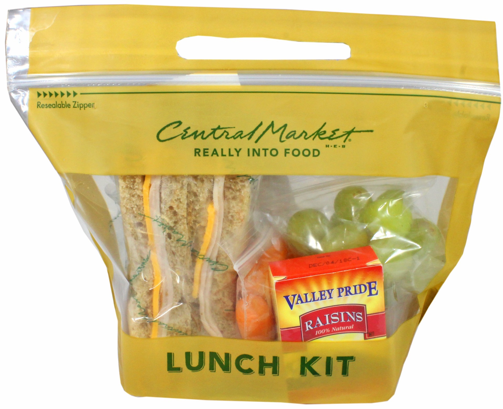 Turkey and cheddar on whole wheat bread with carrots, grapes and raisins