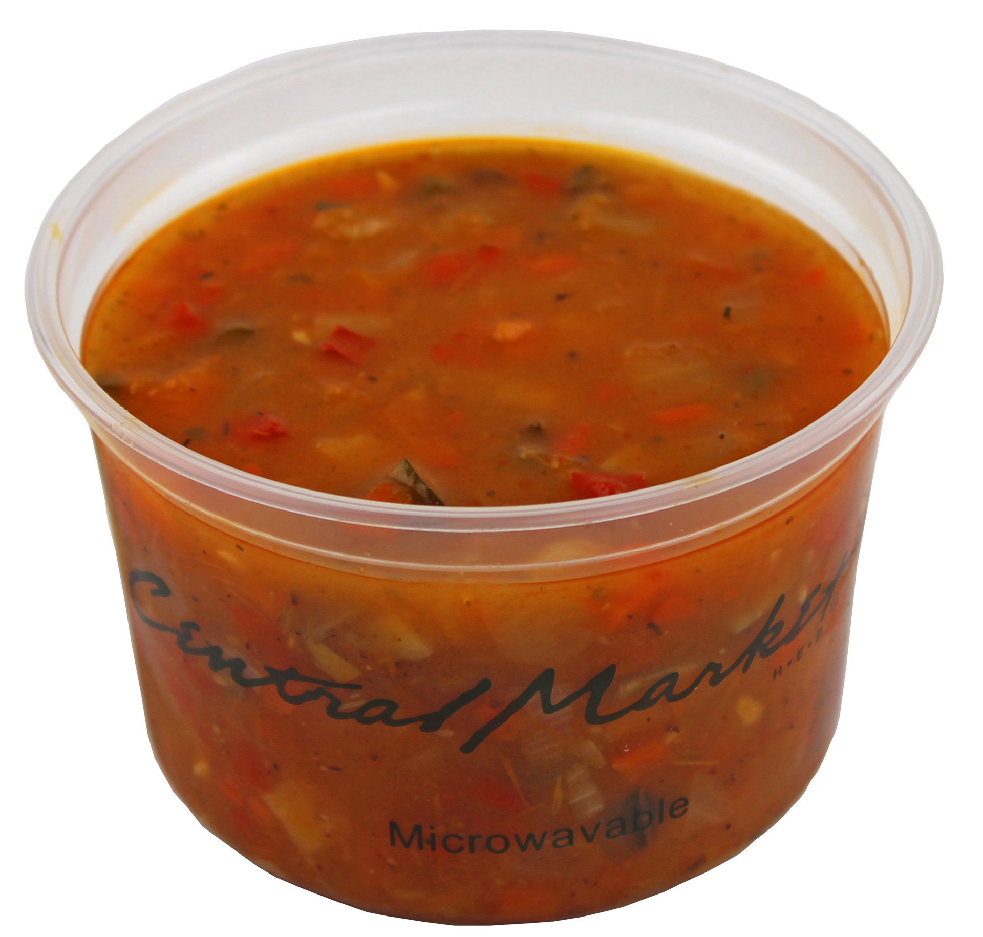 soup: vegetrian vegetable (water, roma tomatoes, yellow onion, cremini mushrooms, gold potatoes, tomatoes (tomatoes, salt, citric acid), carrots, red bell pepper, turnips, parsnips, poblano peppers, f…