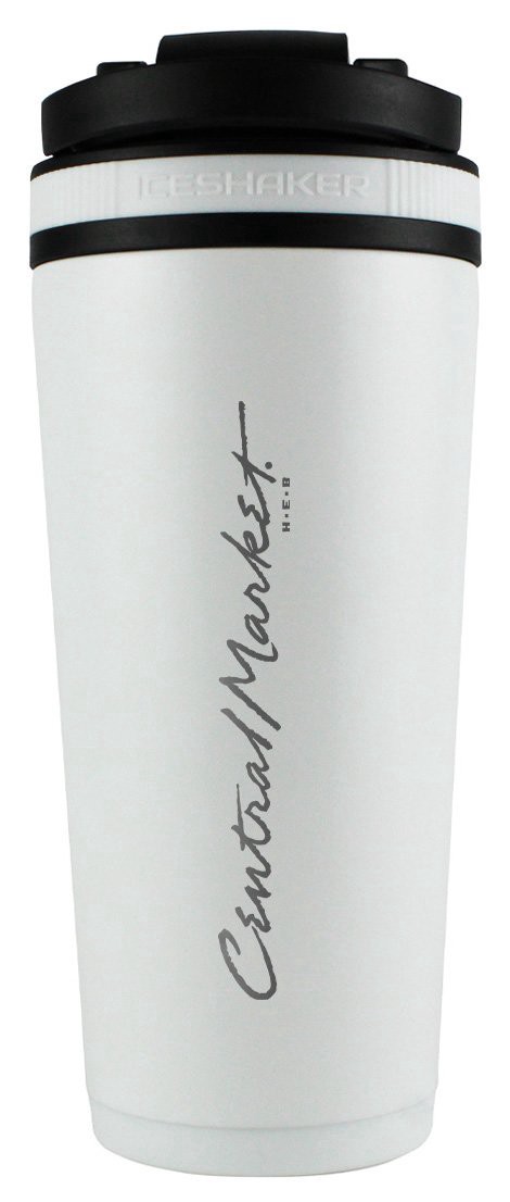 Our Central Market stainless steel ice shaker is a high-quality, double wall insulated protein shaker bottle that will keep your drink cold for 30+ hours! For easy measuring, this 26 oz shaker is equi…