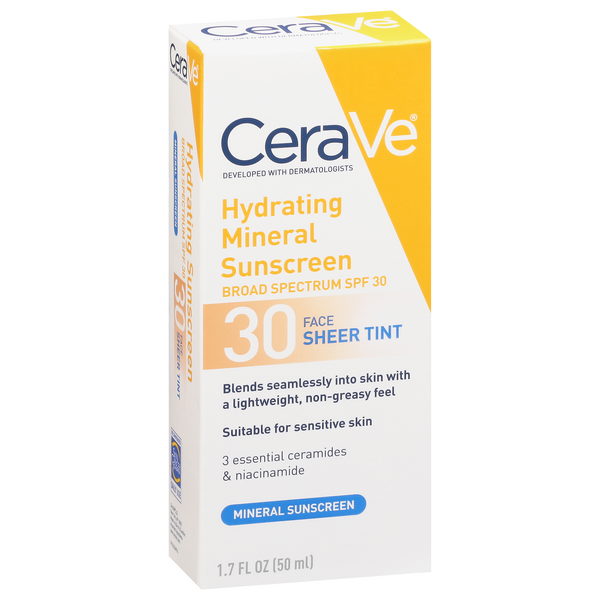 slide 1 of 1, Cerave 30 Face Sheer Tint Hydrating Mineral Sunscreen, 1.7 fl oz