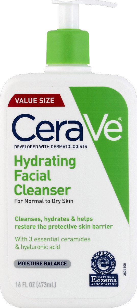For normal dry skin. Developed with dermatologists. Cleanses, hydrates & helps restores the protective skin barrier. With 3 essential ceramides & hyaluronic acid. E Accepted: NationalEczema.org. Natio…