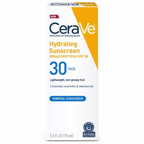 FSA / HSA Eligible Developed with Dermatologists, CeraVe Hydrating Sunscreen Face Lotion SPF 30 provides broad spectrum protection with 100% mineral sunscreen that reflect the sun's damaging UVA/UVB r…