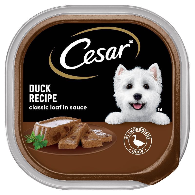 - Single: Contains one (1) 3.5 oz. easy-peel tray of Cesar Wet Dog Food Classic Loaf in Sauce Duck Recipe.