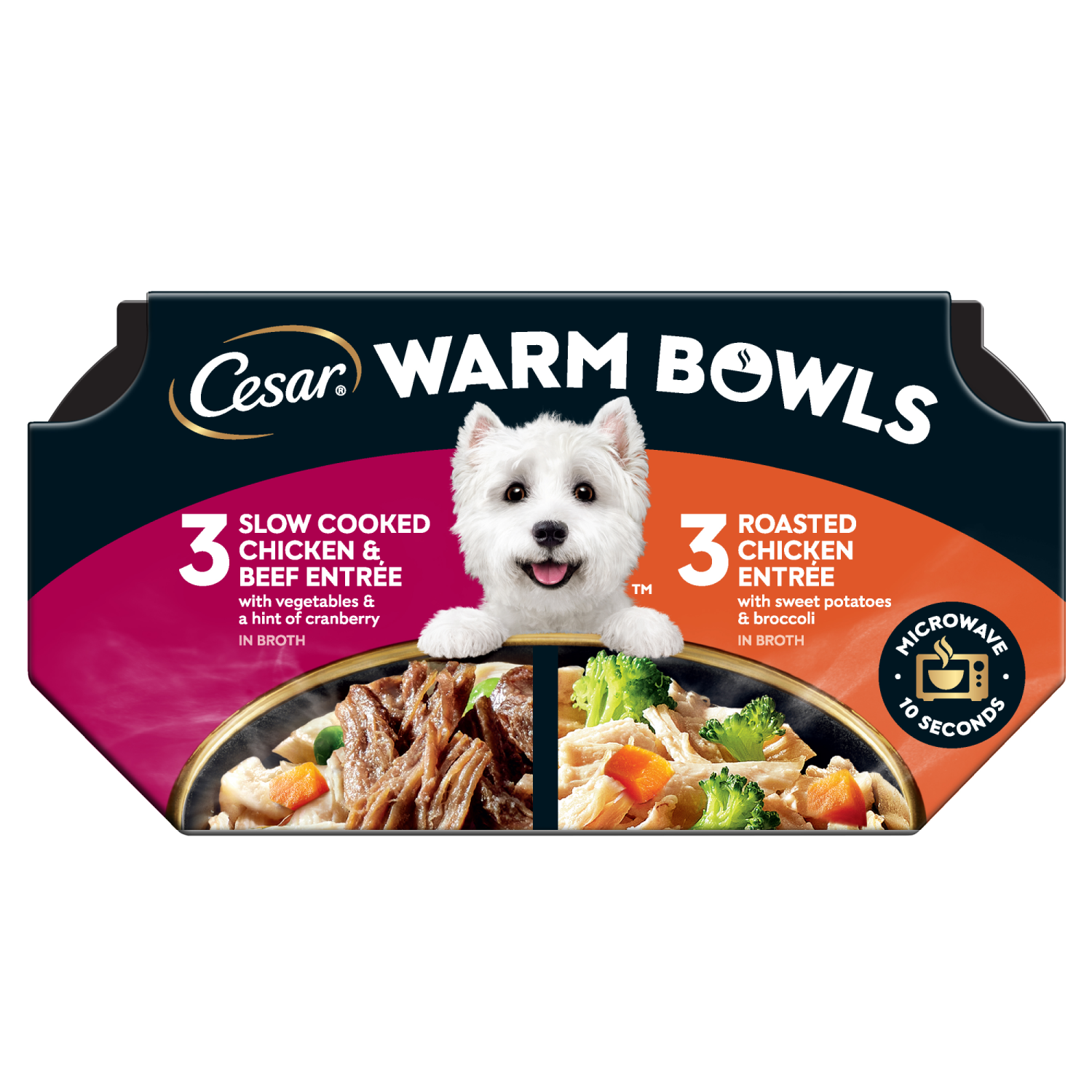 Calorie Content (Calculated): 911 kcal ME/kg, 70 kcal ME/cup. Cesar Warm Bowls are formulated to meet the nutritional levels established by the AAFCO Dog Food Nutrient Profiles for Adult Dog Maintenan…