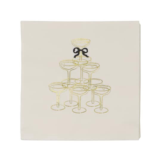 Find these Champagne Tower Beverage Napkins, 20ct. by Celebrate It at Michaels. Featuring a gold foil champagne glass tower with a subtle black bow, these cocktail napkins are great to have on hand fo…