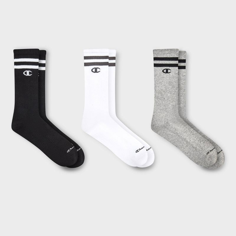 Champion Authentic Originals Men's 3pk Varsity Cushion Crew Socks - Gray/White/Black 6-12