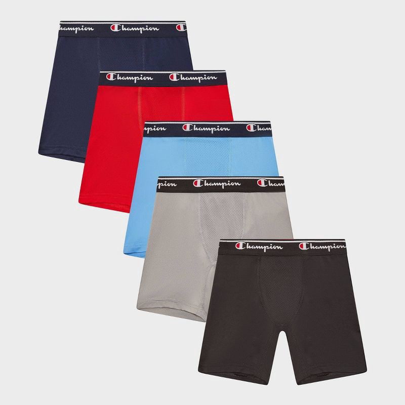 Champion Boys' 5pk Wicking Active Performance Boxer Briefs - Blue/Red XL
