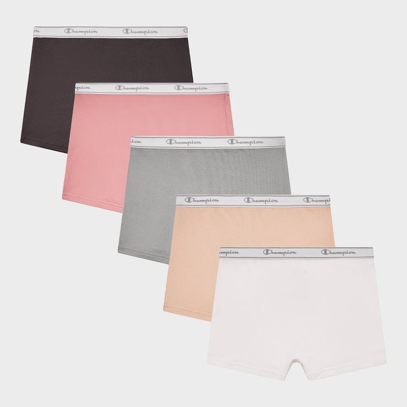 Champion Girls' 5pk Soft Stretch Authentic Originals Boyshort Underwear - XL
