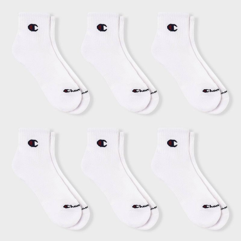slide 1 of 4, Champion Iconic Essentials Men's 6pk Cushion Quarter Socks - White 6-12, 6 ct