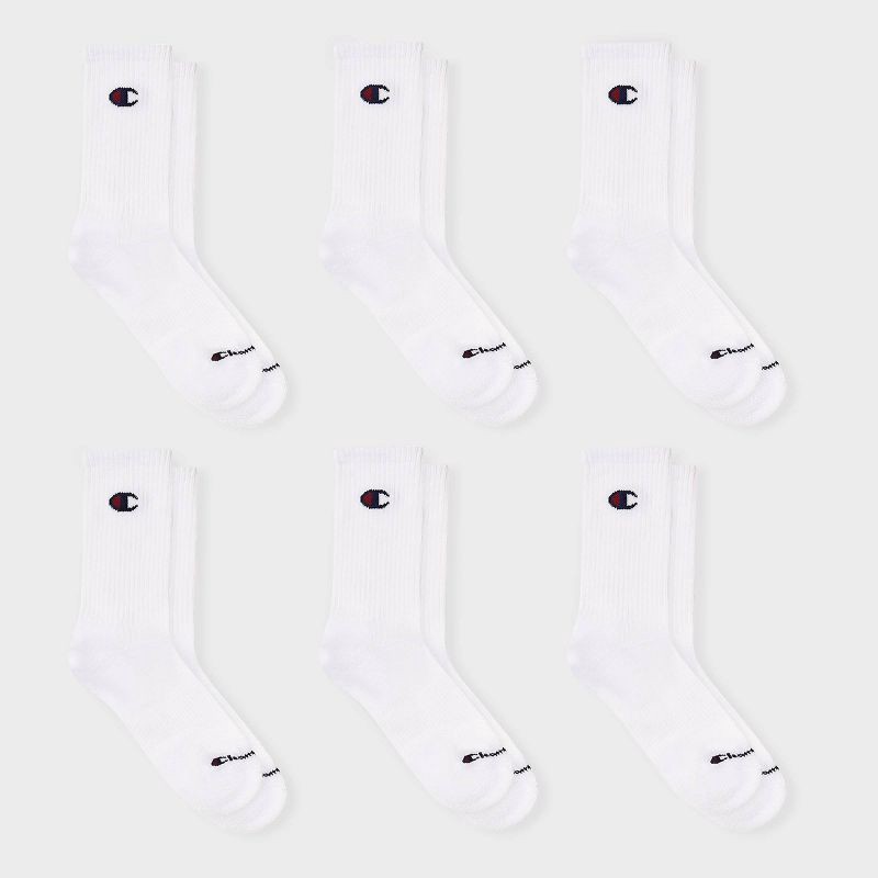 Champion Iconic Essentials Women's 6pk Cushioned Crew Socks - White 4-10