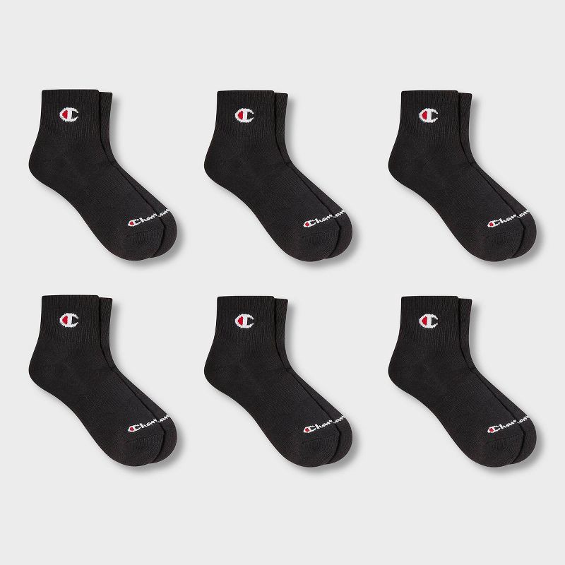 slide 2 of 4, Champion Iconic Essentials Women's 6pk Cushioned Quarter Crew Socks - Black 4-10, 6 ct