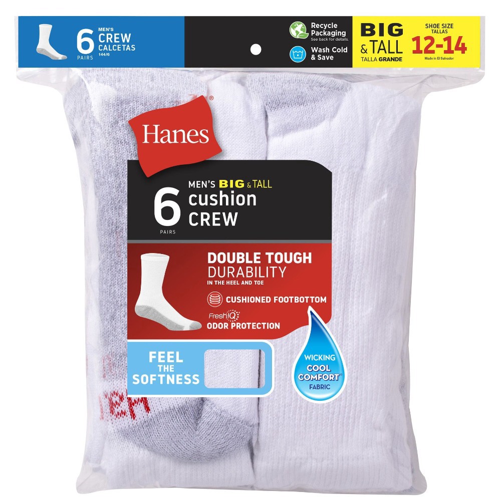 Champion Mens Big & Tall High Performance Crew Socks