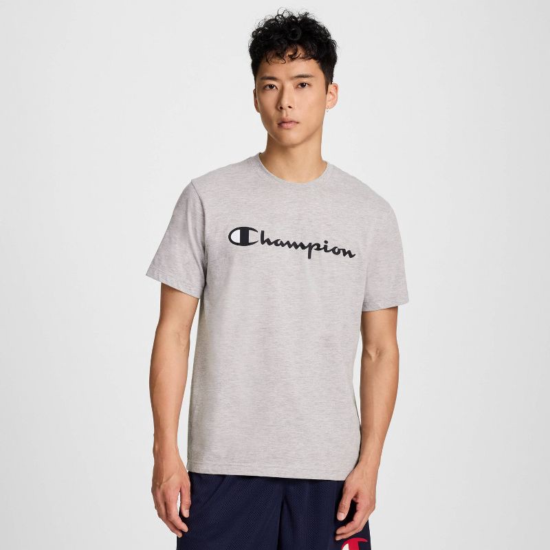 Champion Men's Script T-Shirt - Light Gray Heather XL