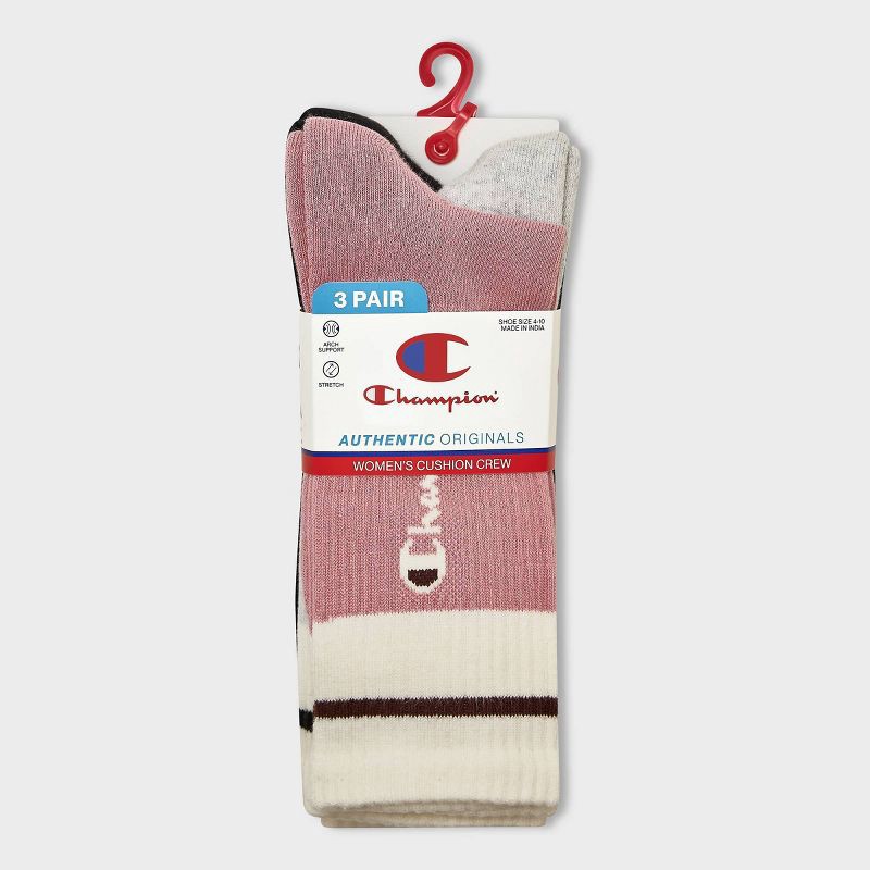 These women's cushion Crew socks combine comfort and an athletic design with with classic varsity stripe detailing . Featuring a great Crew fit that helps deliver a soft, supportive feel, while arch s…