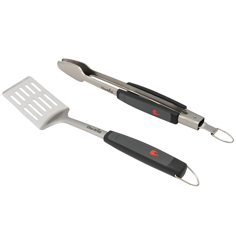 Deluxe tool set includes a spatula and locking tongs to easily flip and grasp food. Heavy-duty stainless steel construction for increased strength, solid durability and a sleek look. Molded thermoplas…