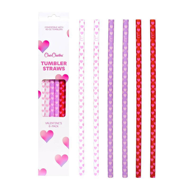 CharCharms 6pk 40oz Valentines Water Bottle Straws