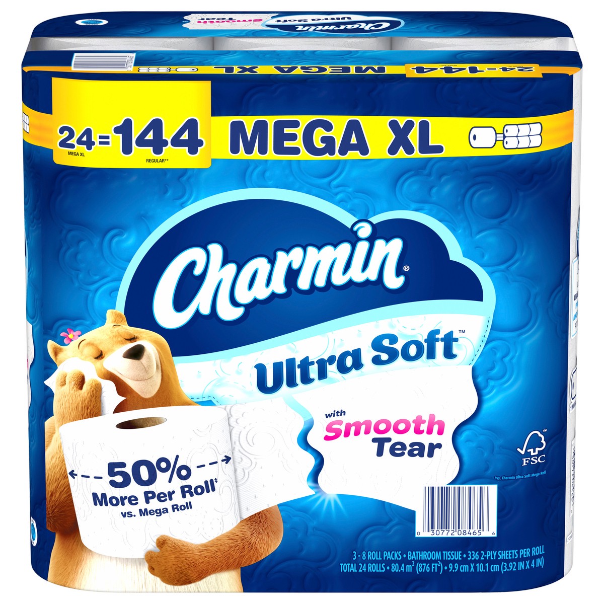 Charmin Ultra Soft Toilet Paper 24 Mega XL Rolls, 336 Sheets Per Roll