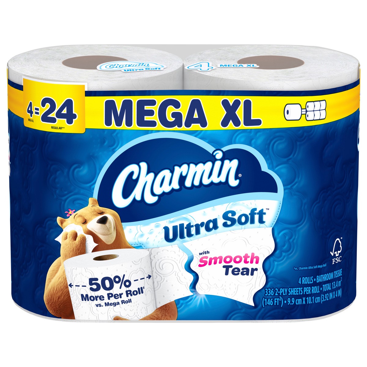 Charmin Ultra Soft Toilet Paper 4 Mega XL Rolls, 336 Sheets Per Roll