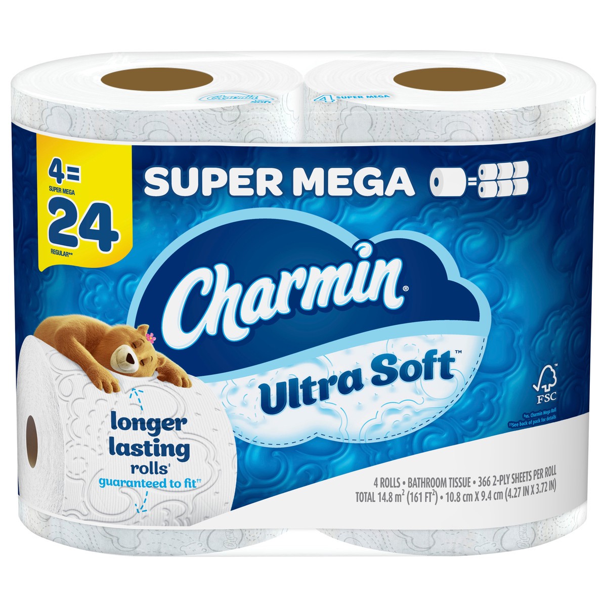 Charmin Ultra Soft is our softest toilet paper ever so it is harder than ever to resist! It is 2X more absorbent versus the leading bargain brand. When you buy Charmin Ultra Soft Super Mega Roll toile…