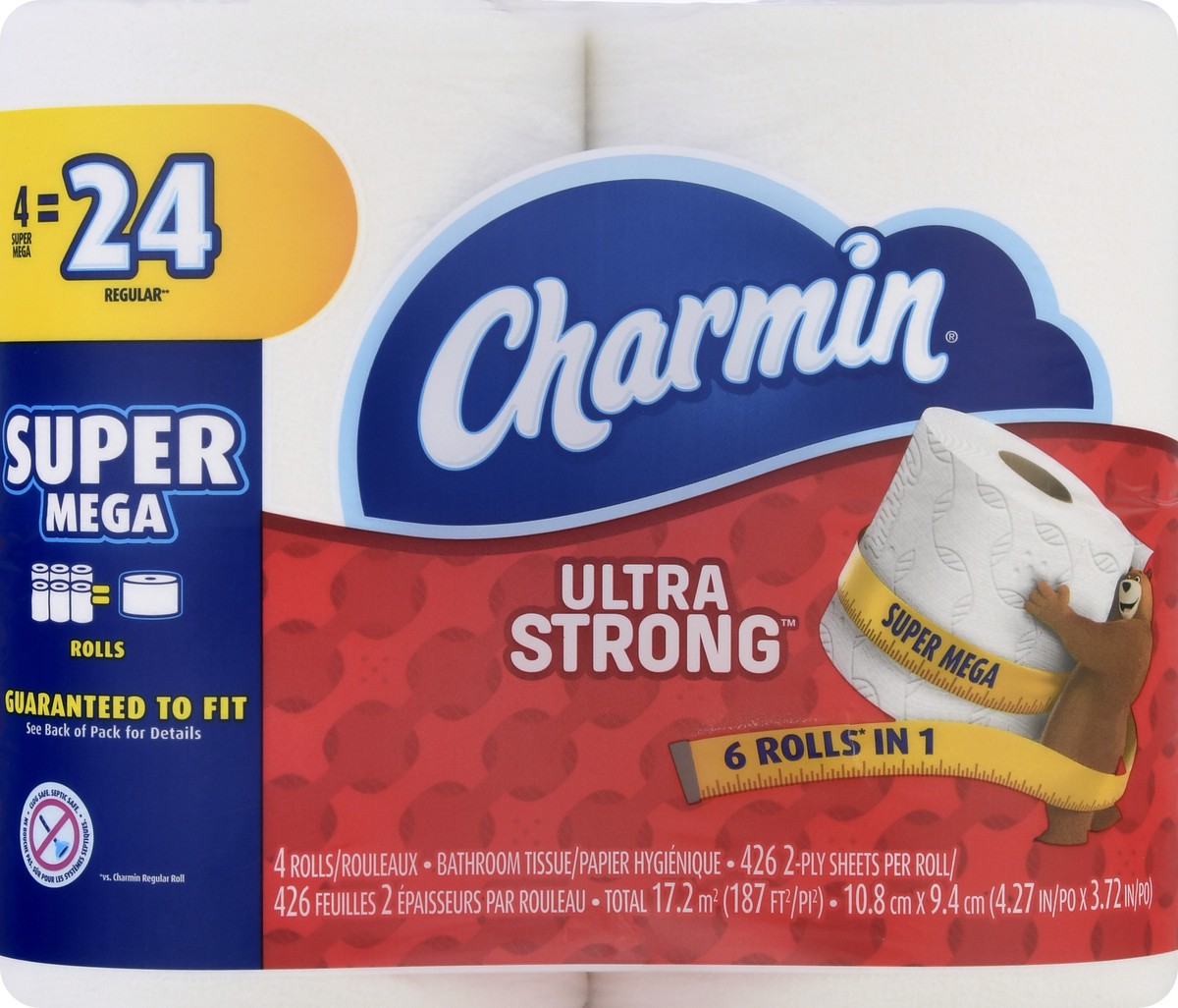 3.92 in x 4 in (9.9 cm x 10.1 cm). 308 2-ply sheets per roll. Total 36.9 sq m (402 sq ft). Cleans better, use less (vs. leading bargain brand [USA], vs. bird brand 1-pl [Canada]). Clog safe. Septic sa…