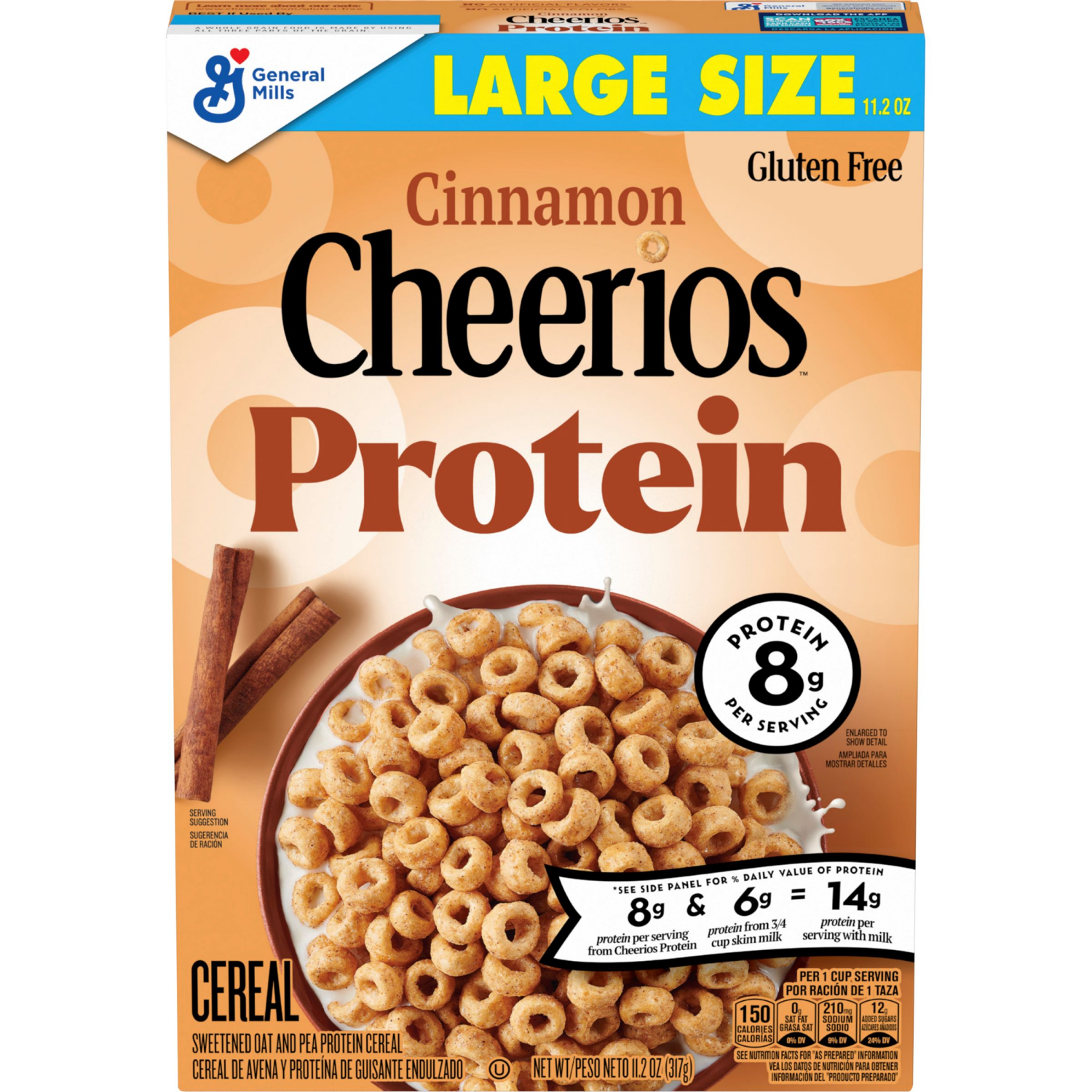 Cinnamon Cheerios Protein treats you and your family to an O-so-delicious taste with eight g of protein per serving. This sweetened oat and pea protein cereal delivers satisfying cinnamon flavor in ev…