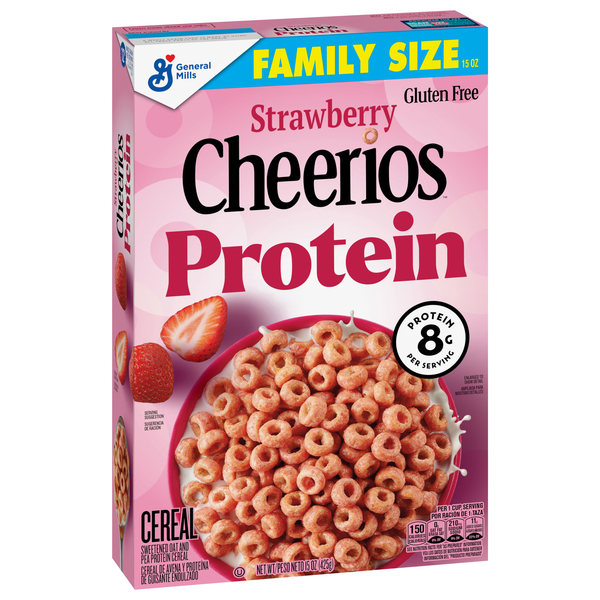 Strawberry Cheerios Protein treats you and your family to an O-so-delicious taste with 8g of protein per serving. This sweetened oat and pea protein cereal delivers satisfying strawberry flavor in eve…