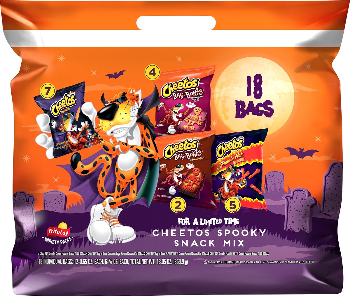 Cheetos Spooky Snack Mix is the perfect variety pack for the Halloween Season. For a limited time only grab a pack that includes 18 bags of your favorite Cheetos products. These are great to enjoy wit…