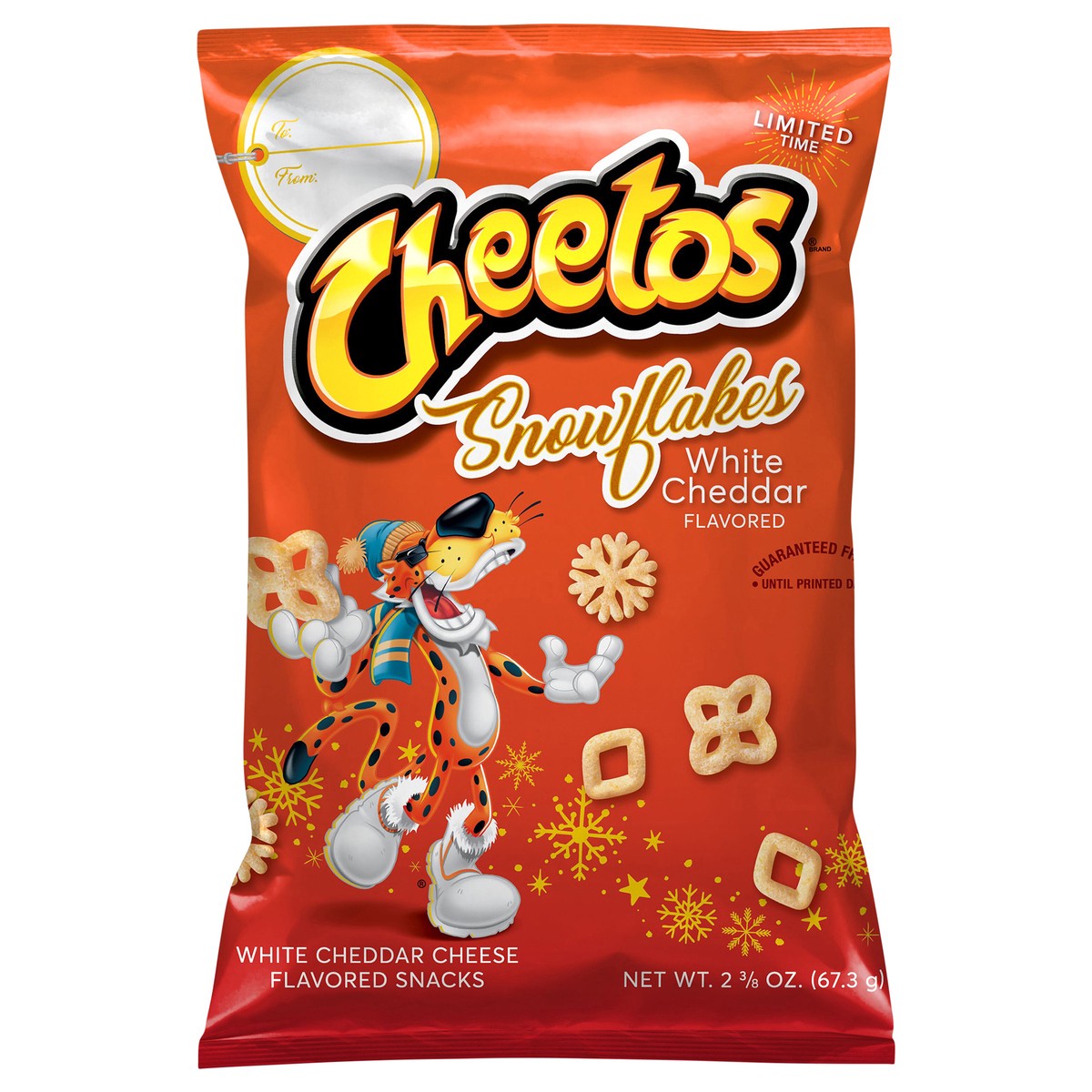 Let it snow. Take your taste buds on a sleigh ride through a Cheetos winter wonderland. Open a bag, stick out your tongue and taste all the white cheddar goodness. Stockpile your Snowflakes and engage…