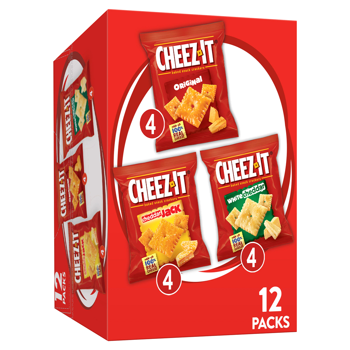 4 packages each: Cheddar Jack, White Cheddar, Original. Contains 100% real cheese.