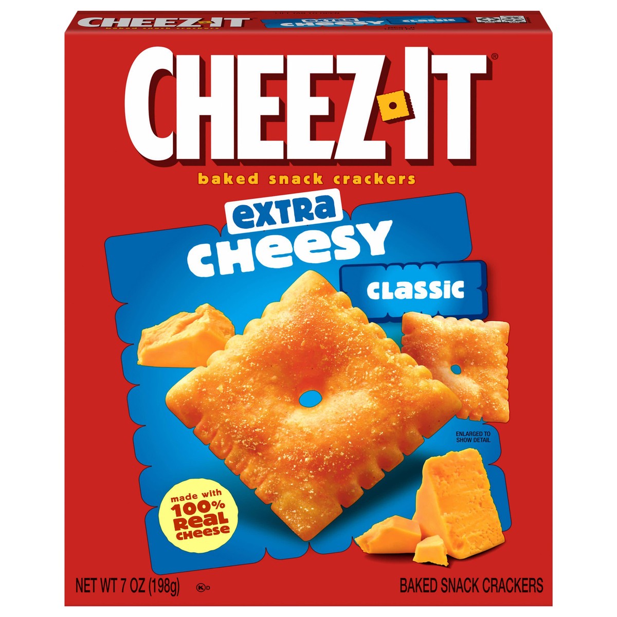 Take snack time to the big leagues with our Cheez-It Extra Cheesy Baked Snack Crackers. Cheez-It Extra Cheesy Baked Snack Crackers are the real deal - made with 100% real cheese that's been carefully …